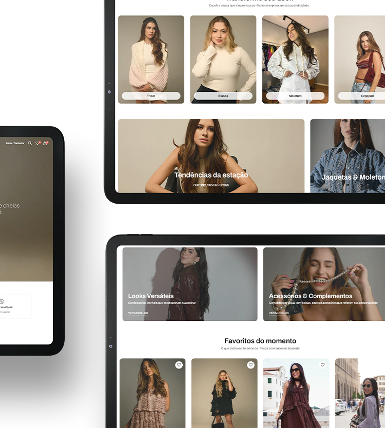 A Viis chegou com a missão de dar um upgrade em sua loja online. Migramos do WooCommerce para o Shopify, com uma estrutura mais leve, moderna e pronta para crescer. A nova loja ficou funcional, refinada e alinhada com a identidade da marca.